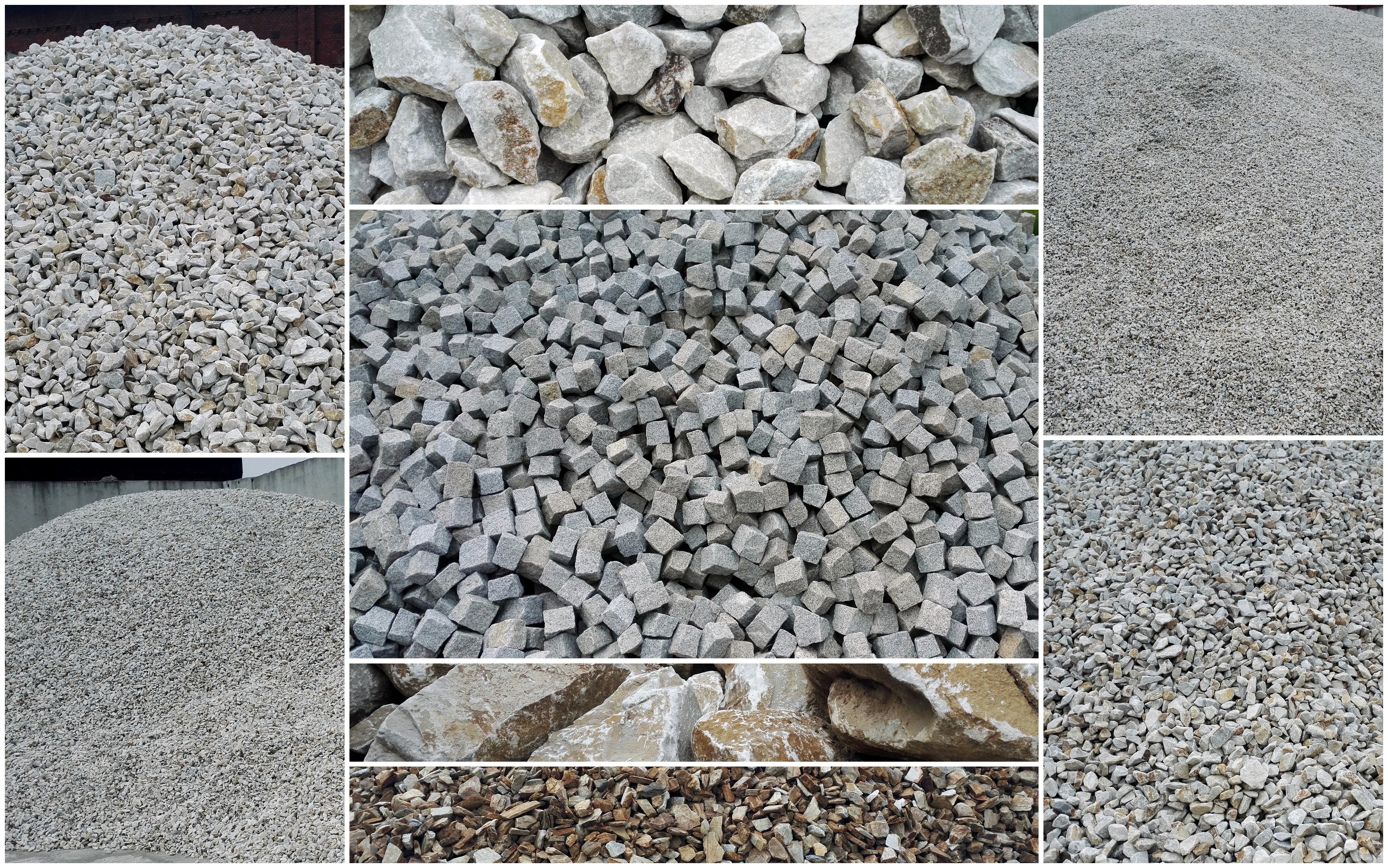 Naše společnost nabízí široké spektrum vytěženého krystalického vápence, ať už jako kamenivo ve frakcích 8/16; 16/32; 32/63; 63/125; solitéry; případně jemný mramor ve frakcích 0,5-1mm (0-2mm); 0-4mm; nebo také namletý na prach o velikostech 2-20 µm.